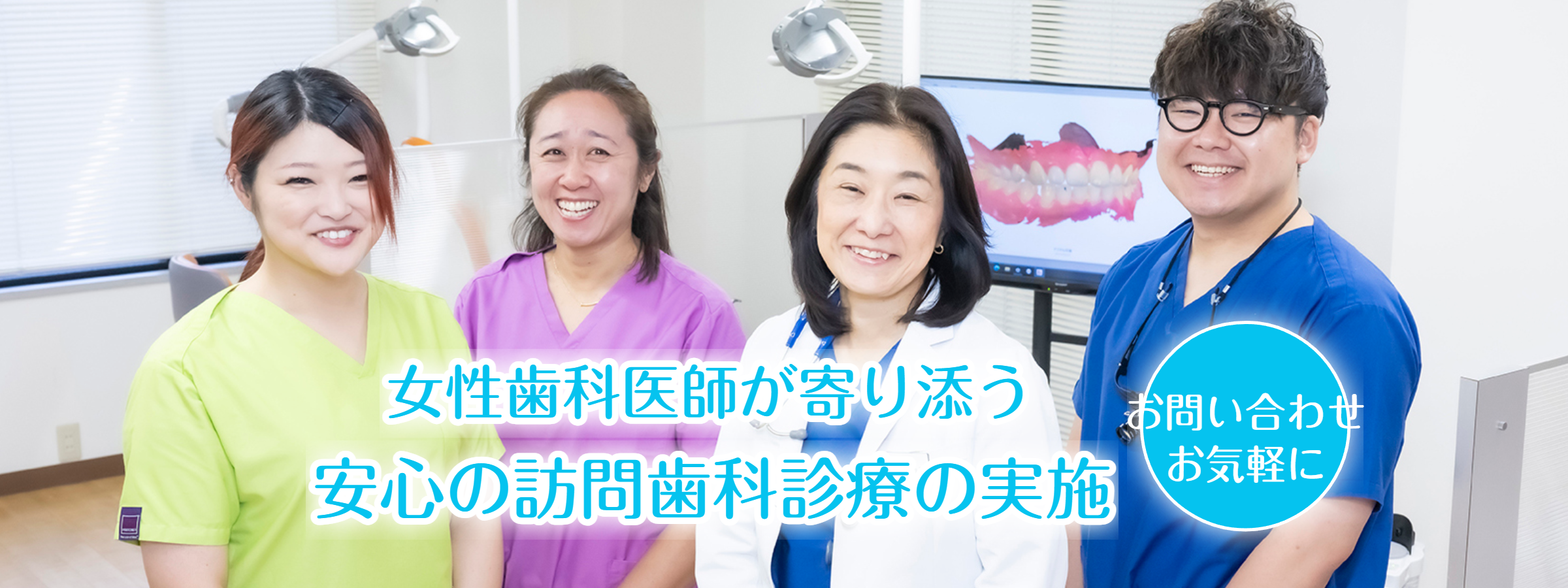認知症の方や身体が不自由な方への対応も可能で、虫歯・歯周病・入れ歯・摂食嚥下の治療からお口のケアまで、きめ細かくサポート。通院が困難な方はもちろん、介護されているご家族も、お気軽にご相談ください。